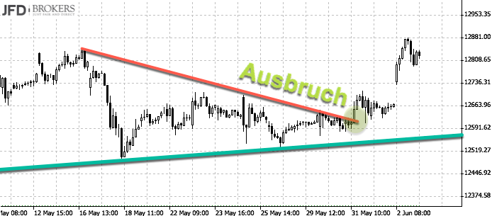 Der Ausbruch fand statt und setzte den Impuls nach einer kurzen Bedenkzeit dann bis zum Ende der Handelswoche mit einem GAP noch einmal eindrucksvoll fort: